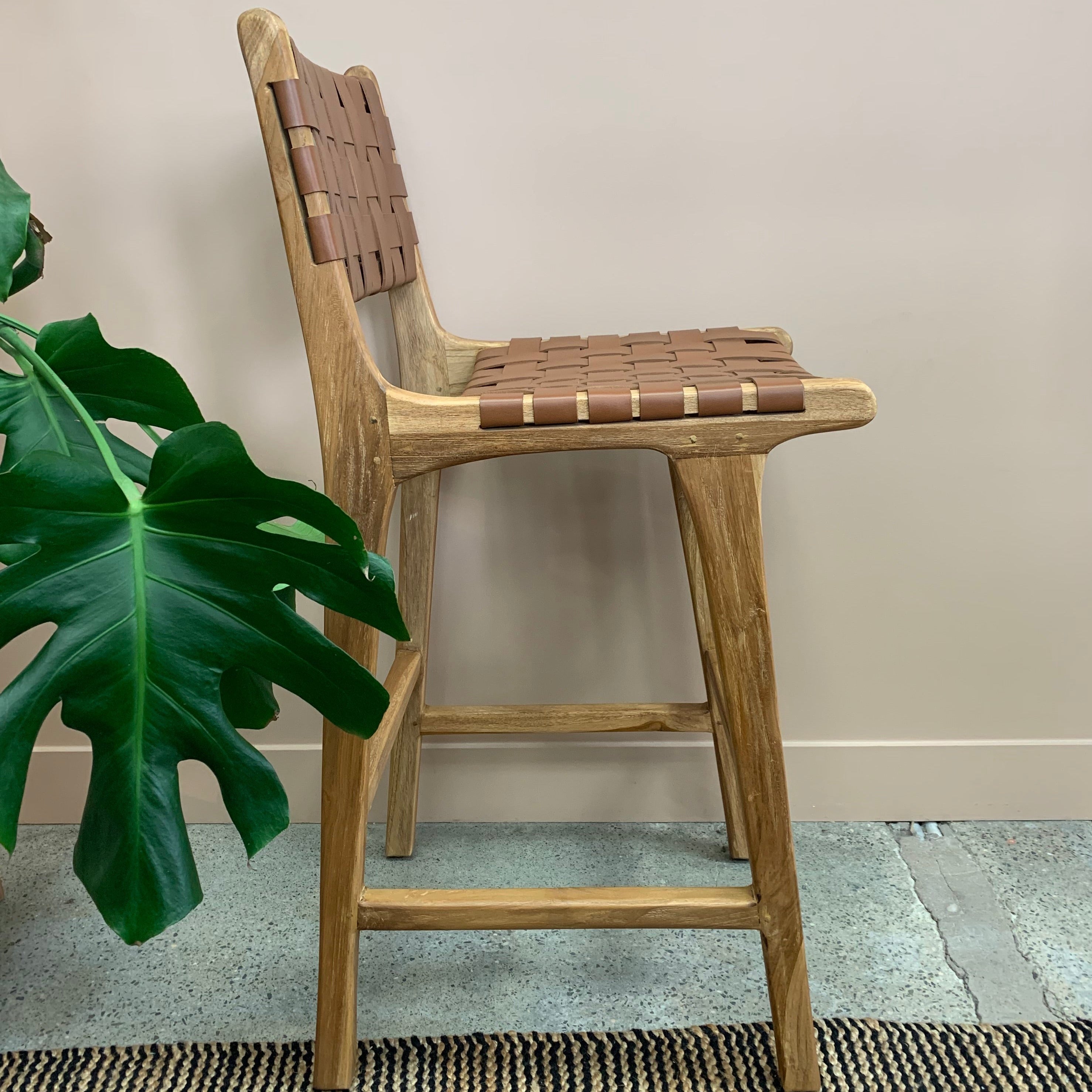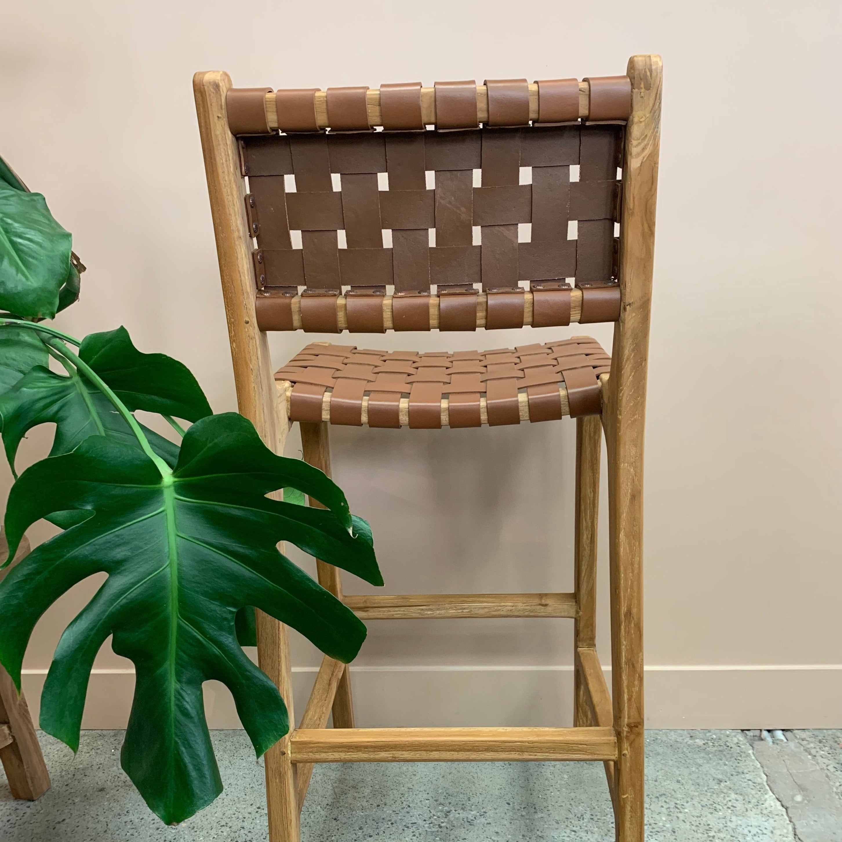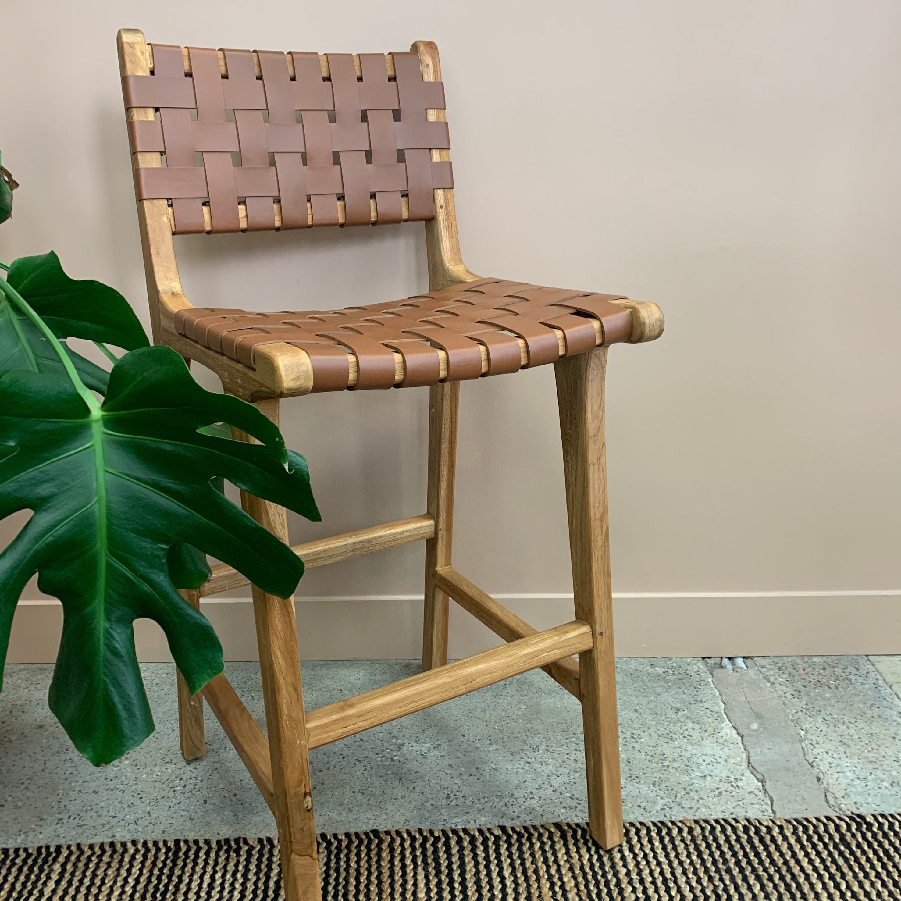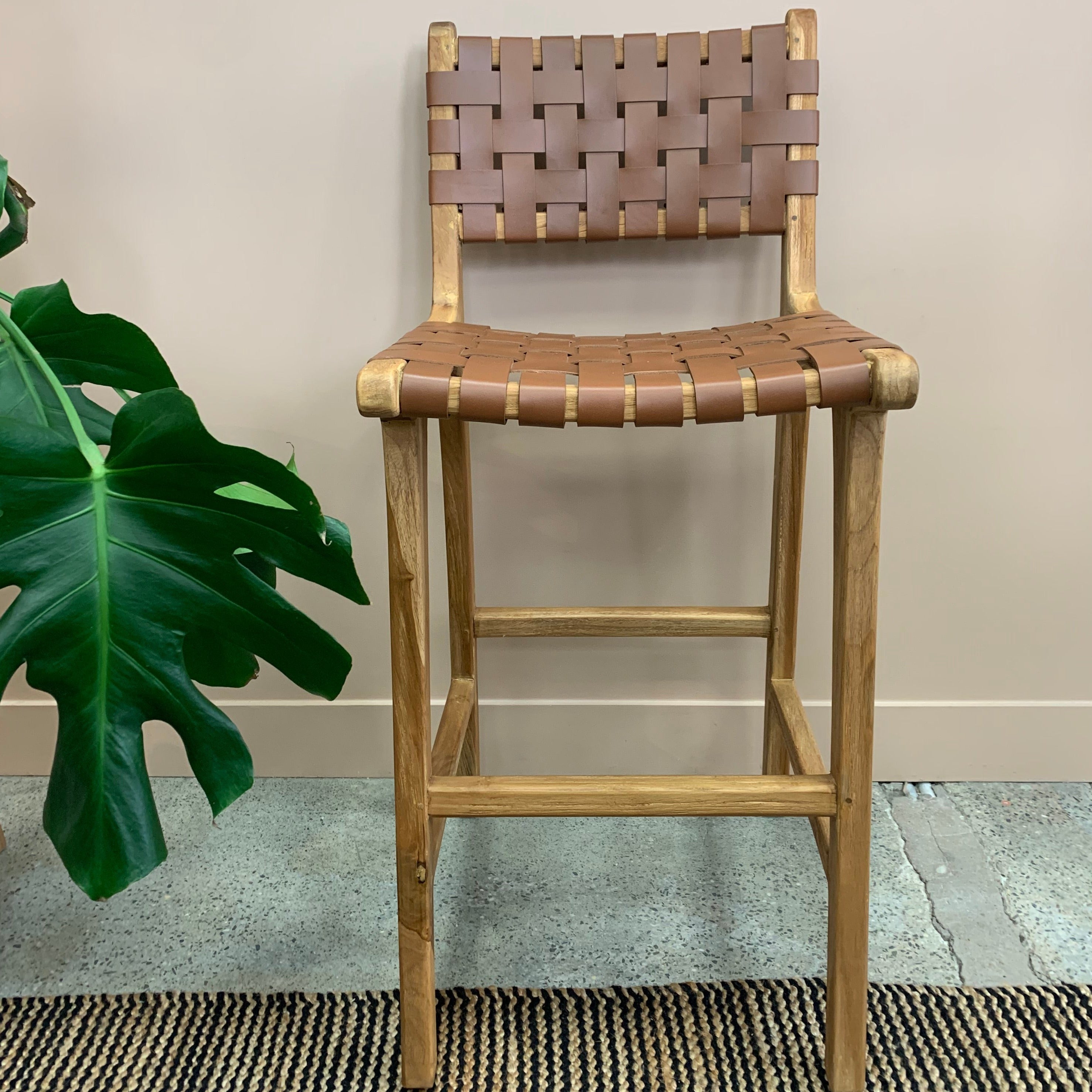 Luka Woven Leather Barstool
