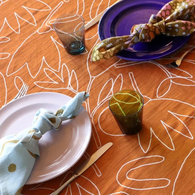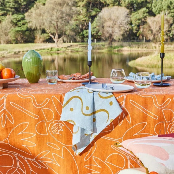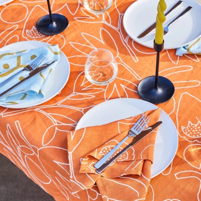 Gather a group and dine in style with our Outline Floral Tablecloth. The perfect backdrop for every meal, this oversized floral print in a rich terracotta hue is our ode to the Australian Summer. Perfect for modern dining.
